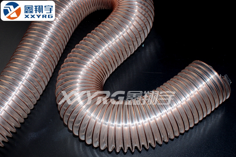 顏色:透明PU管壁,帶鍍銅色鋼絲螺旋加強