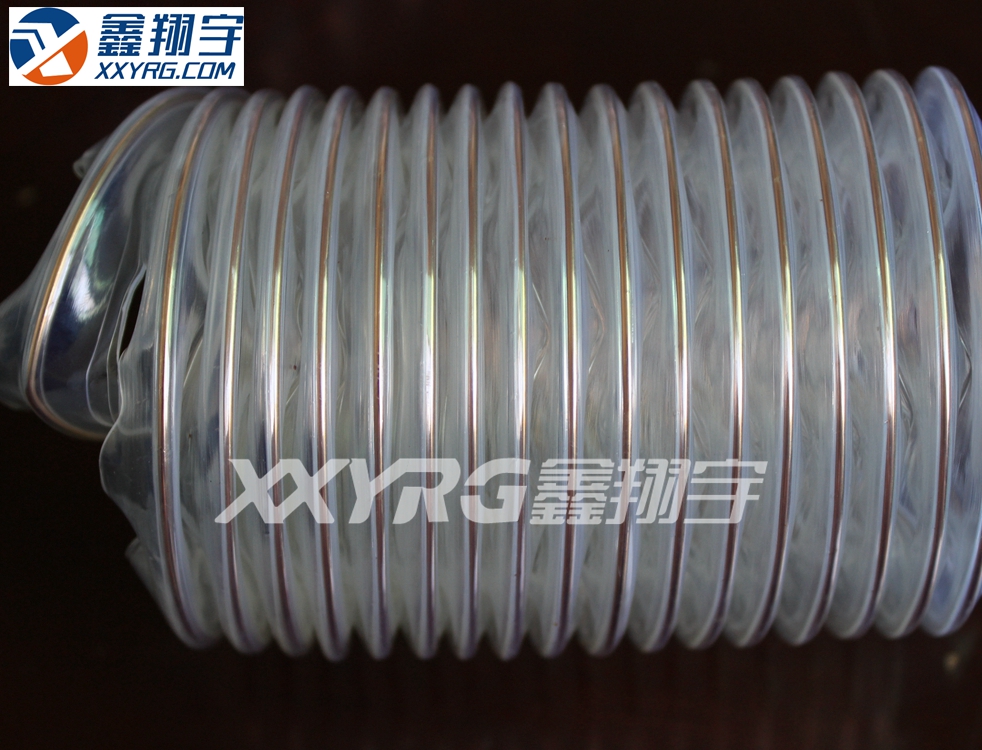 顏色:透明PU管壁,帶鍍銅色包塑鋼絲螺旋加強